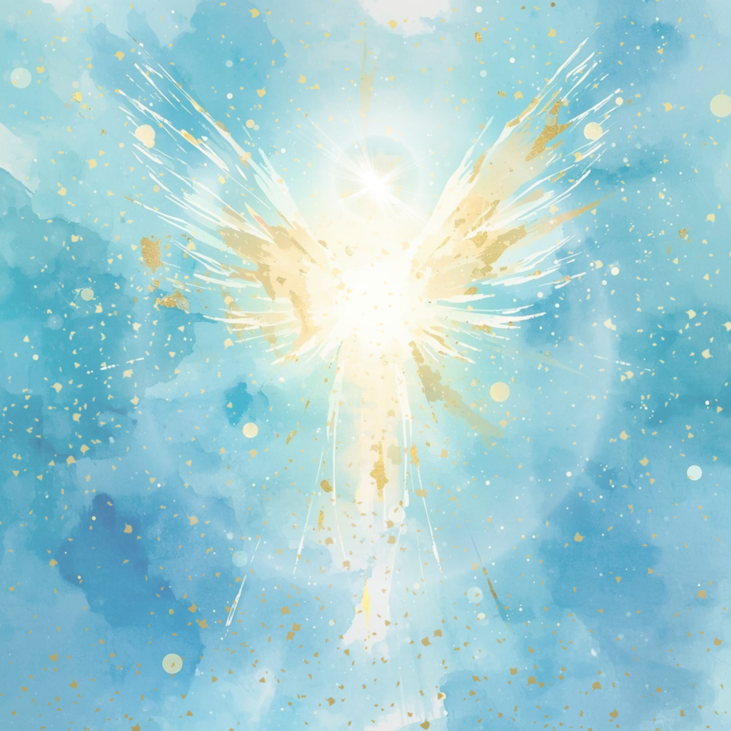 Gerade schaue ich auf das wunderschöne blauglänzende Engelbild, das neben meinem Laptop auf dem Tisch steht und mich freundlich anlächelt.